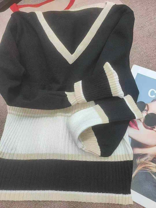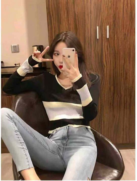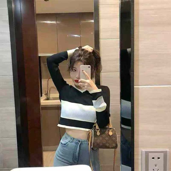 高腰内搭打底修身早秋V领针织衫长袖上衣,独立包装,均码,220件,清6.8,分➕0.5