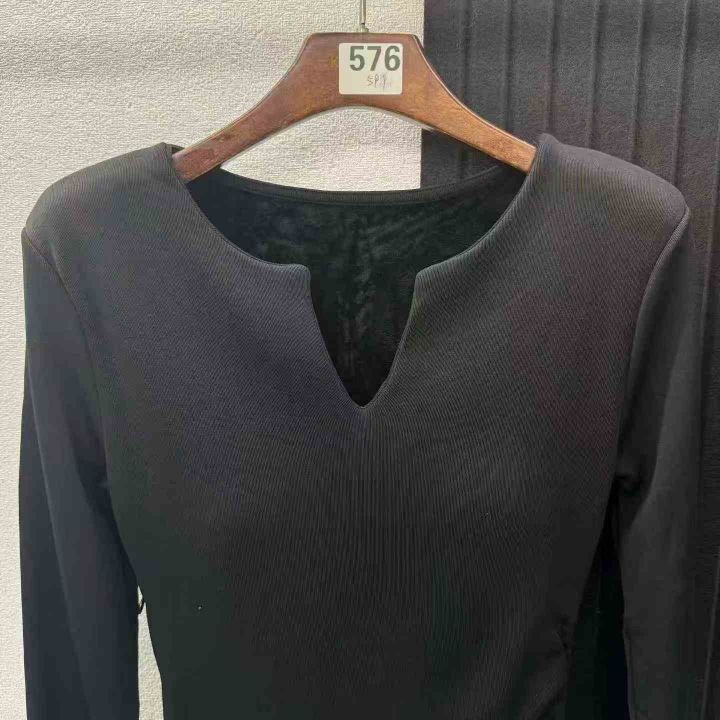 高品质女装整款加绒连衣裙 黑色V领侧打揽修身包臀裙 ...
