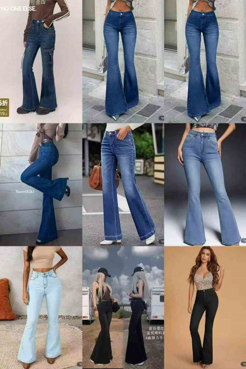 #Lady jeans wholesale弹力高腰微喇叭牛仔裤 修身款水...