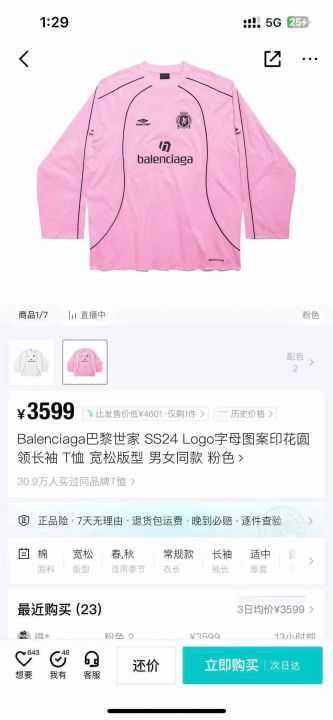 巴黎世家长袖T恤200多件。 货号:32539...