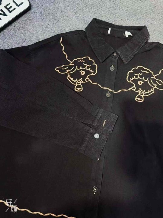 线条绣花波浪衬衫女,品牌剪标,纯棉重磅,面料:纯棉,颜色:黑色,特点刺绣,独立包装,货品新净,470件左右,全清12.8分货+1