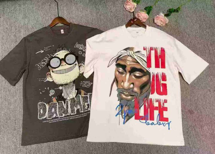 潮牌男士重磅高克重纯棉T桖大面积印花图案3000件,独...