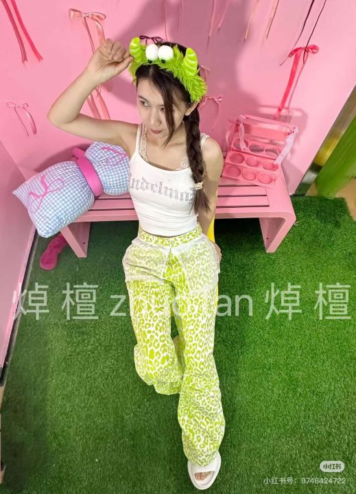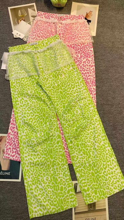 甜酷辣妹豹纹蕾丝拼接百搭牛仔裤,[爱心]240件左右,码数S-L,M码腰围72裤长114,单款两个色,穿70-130斤,广州十三行货,原包装️无瑕疵,[666]实体店品质,分货加一