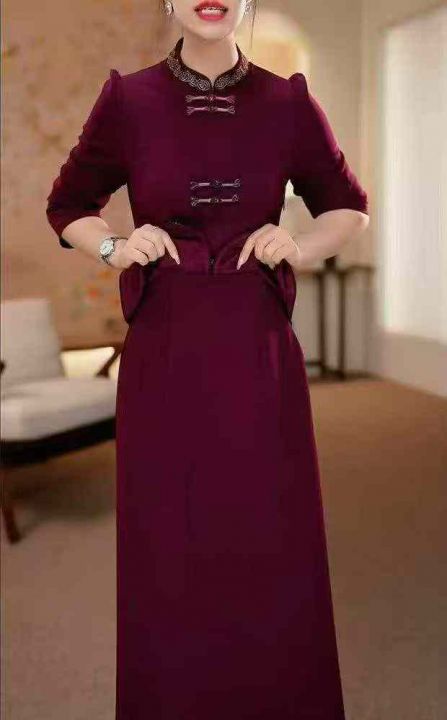 [月亮]:春秋款中式国风气质晚宴礼服连衣裙
