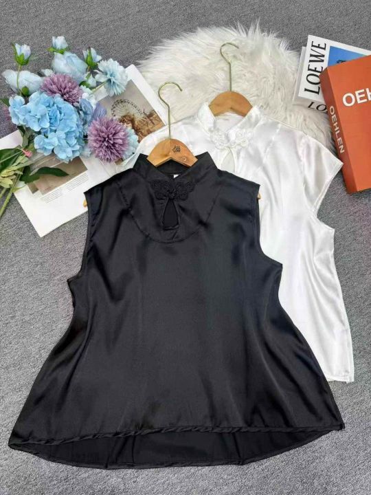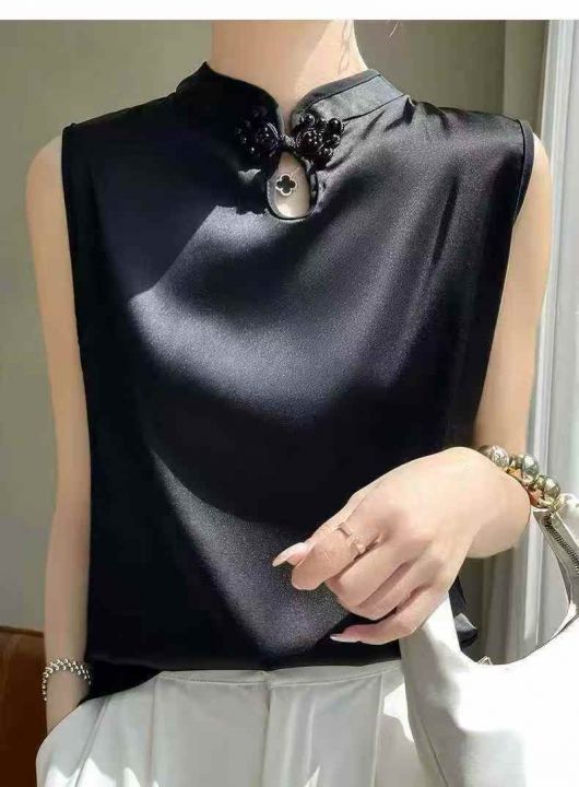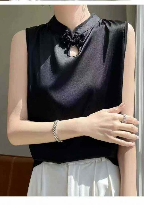 新中式立领盘扣无袖吊带背心女内防真丝吊带上衣,数量:354件 码数:1-4码,大货黑色为主 独立包装(货号331#66)