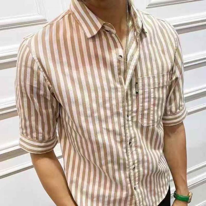 条纹衬衫男长袖春夏季修身薄款免烫抗皱冰丝新款上衣休...
