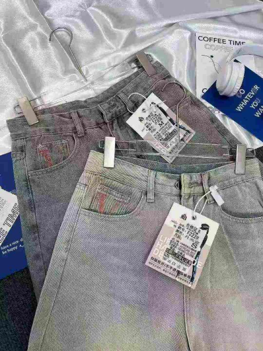 560条韩系松弛感复古卡其色百搭休闲牛仔裤,尺码S-2XL,纯棉,独立包装带吊...