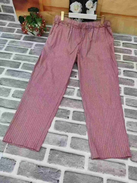 B063-C1,数量520件左右,码数S一2XL,全部独立包装,单款2个,纯棉棉麻面料,版型宽松,竖条纹休闲裤,女装休闲裤,实体店高品质,分货➕1