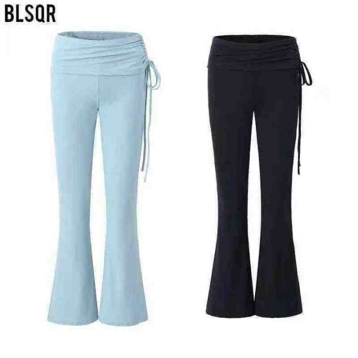 清6.8分货➕1瑜伽裤女新款高腰显瘦健身裤假两件侧边抽绳微喇叭裤运动长裤,...