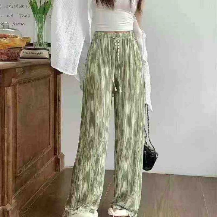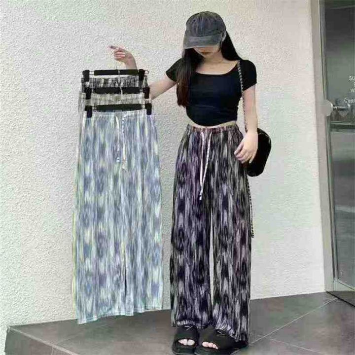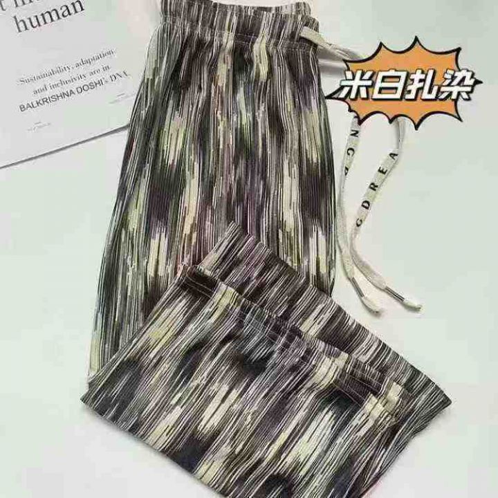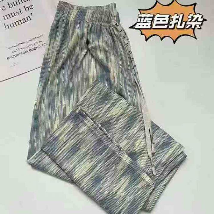 ☕️2000条全清8.8 100条起分货9.9 夏季爆款扎染冰丝阔腿裤 均码 图片5色 独立包装 高弹力
