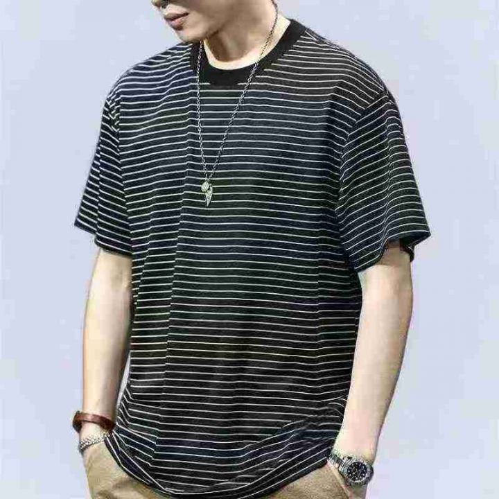 新款条纹夏季宽松休闲短袖男士潮牌T恤半袖港风圆领潮流上衣,码数50-58码,相当于L到-4XL,数量420件,独立包装,货品干净漂亮。
