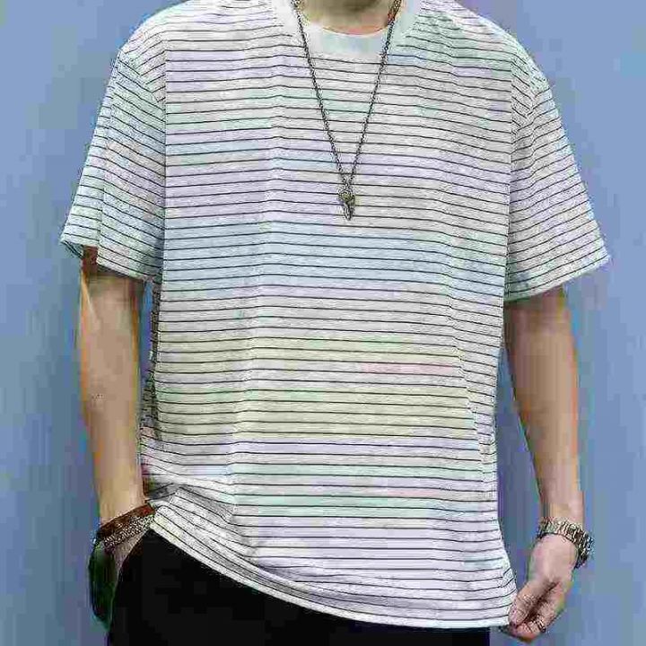 新款条纹夏季宽松休闲短袖男士潮牌T恤半袖港风圆领潮流上衣,码数50-58码,相当于L到-4XL,数量420件,独立包装,货品干净漂亮。
