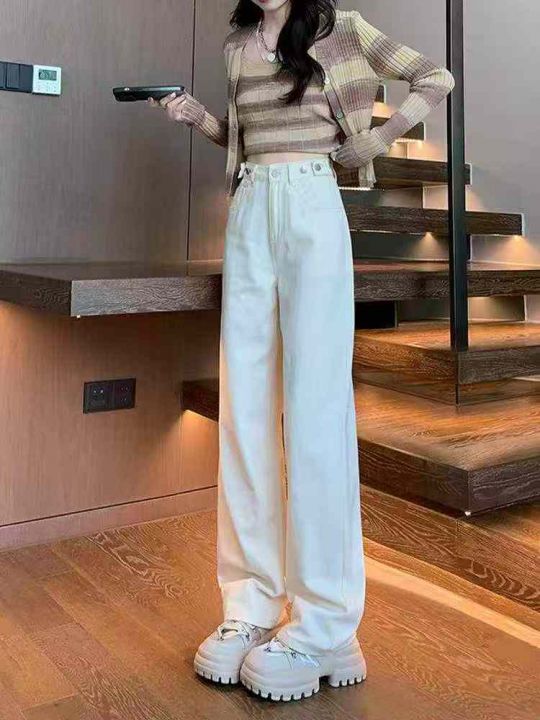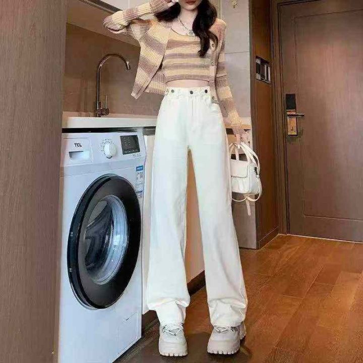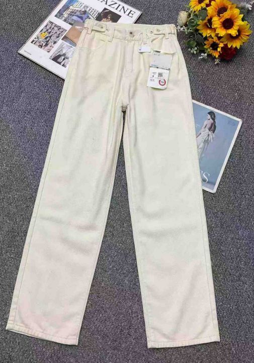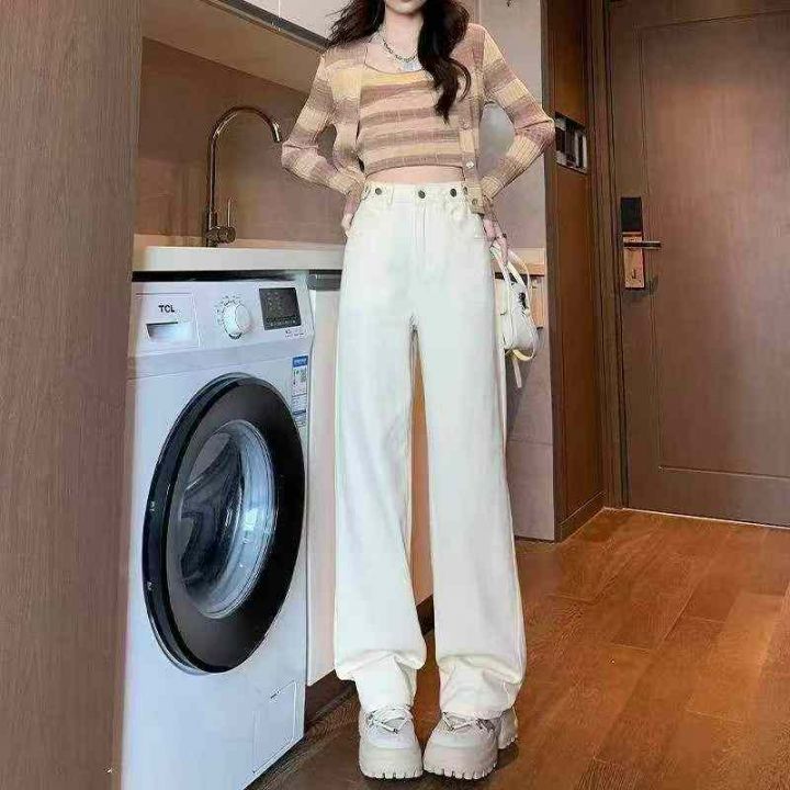 春季新款设计款调节扣百搭高腰宽松直筒阔腿牛仔裤,独...