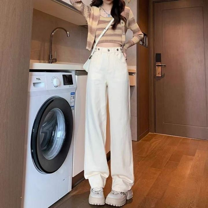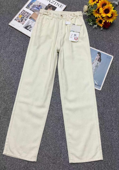 春季新款设计款调节扣百搭高腰宽松直筒阔腿牛仔裤,独...