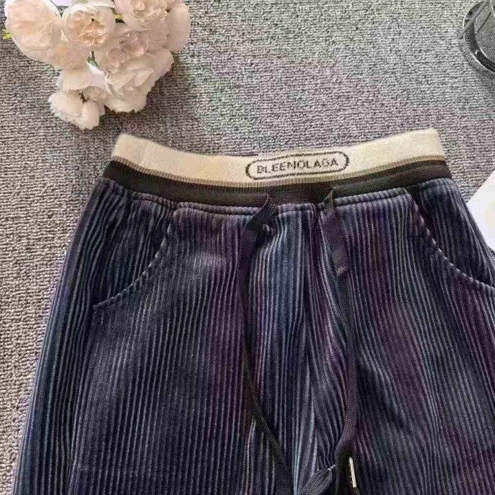 春秋灯芯绒阔腿裤女撞色高腰抽绳设计垂顺抗皱显瘦显高遮肉显腿长 三色
