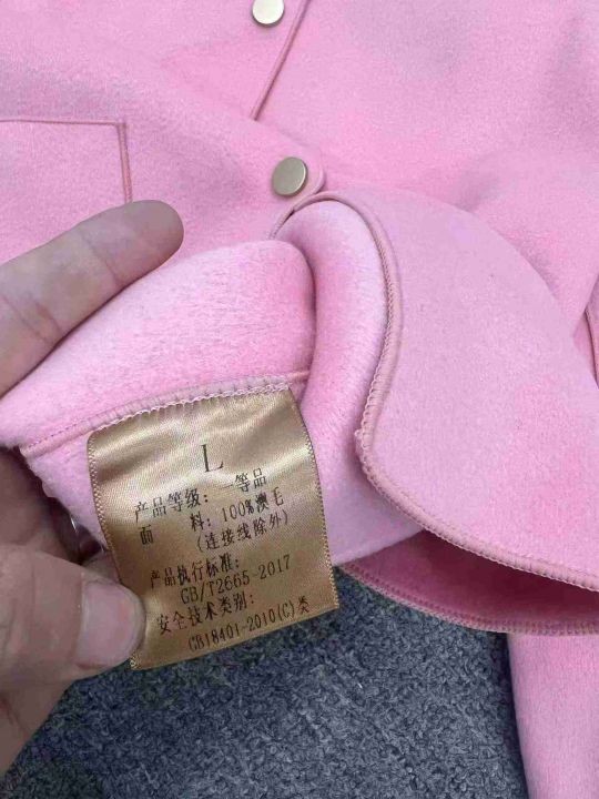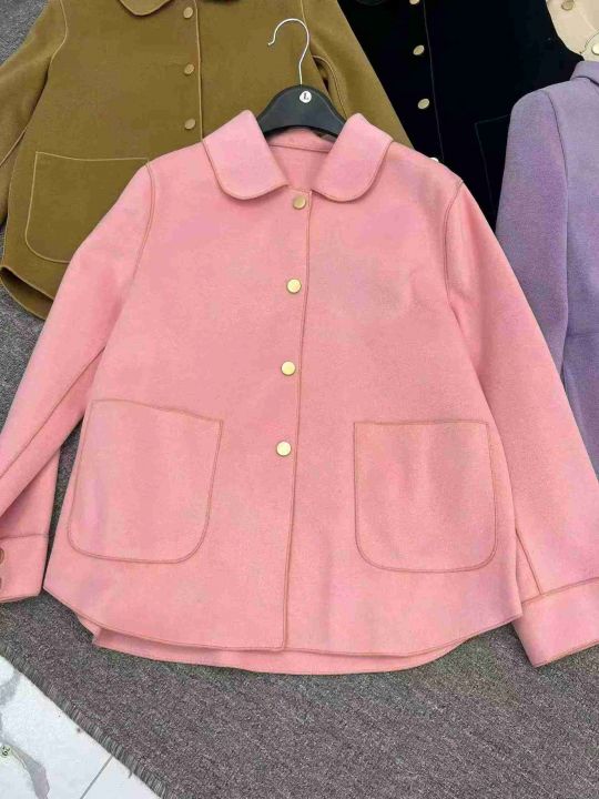 480件春秋款轻奢品大牌娃娃领金标羊毛双面尼子大衣外套,单款5色,码数S-L码。全部防尘袋带衣架装。