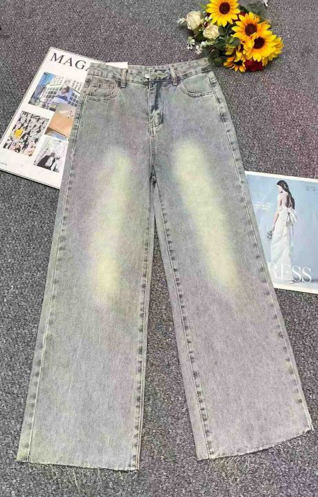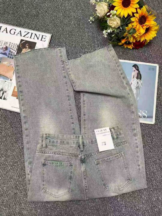 春季新款网红复古设计款直筒阔腿牛仔裤,独立包装带腰...
