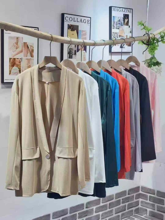 B-55-125,码数S一5XL,数量430件左右,全部独立包装,单款多色,一粒扣,女装休闲西装,版型宽松,分货➕1