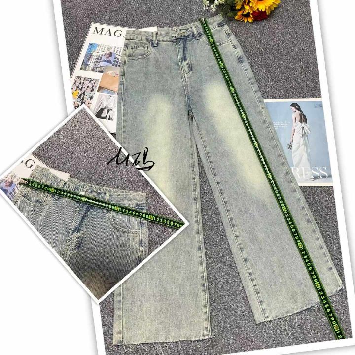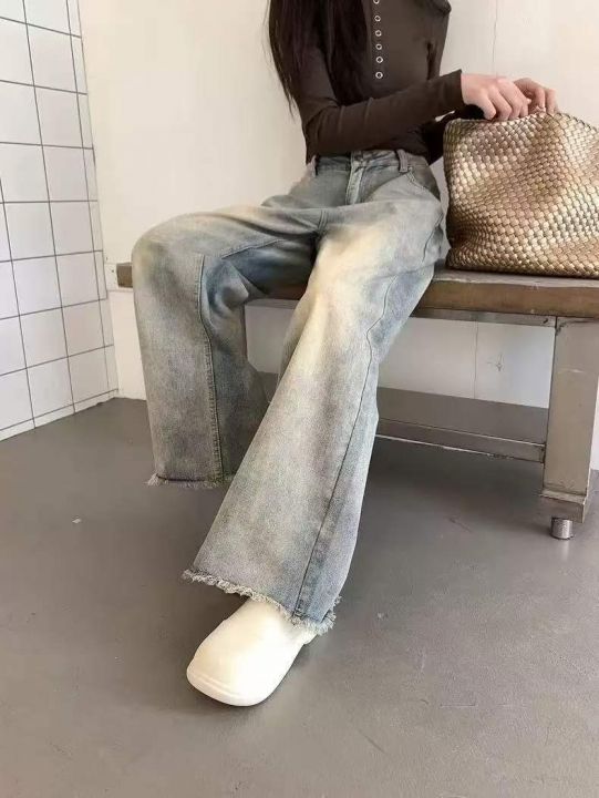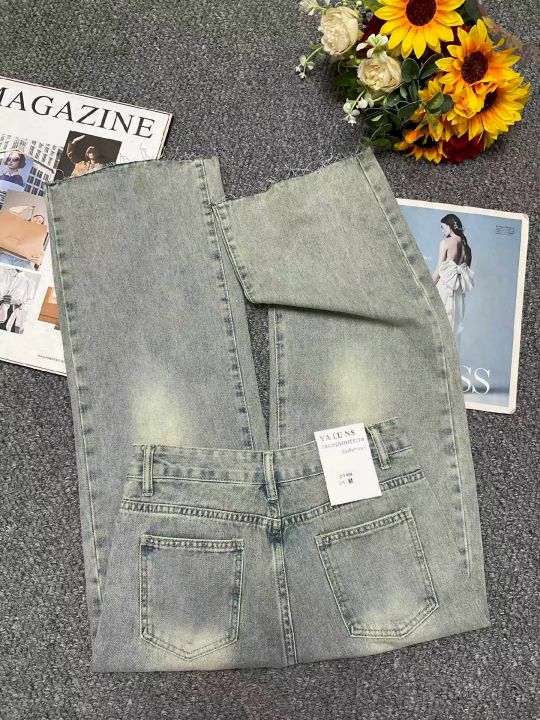 春季新款网红复古设计款直筒阔腿牛仔裤,独立包装带腰...