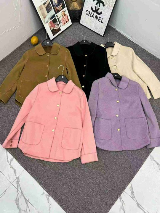 480件春秋款轻奢品大牌娃娃领金标羊毛双面尼子大衣外套,单款5色,码数S-L码。全部防尘袋带衣架装。