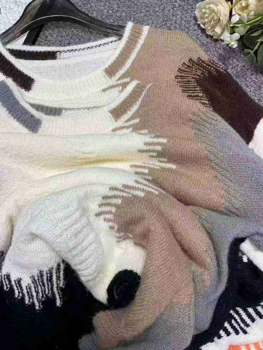 春季新款网红复古潮牌提花设计款套头毛衣,独立包装,...