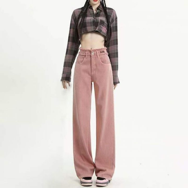 春季新款网红复古脏粉色双扣高腰毛边设计感窄版直筒阔腿牛仔裤,独立包装带吊牌,码数XS-XL码,340件左右,全清11.8元超低价秒杀!分货加一!