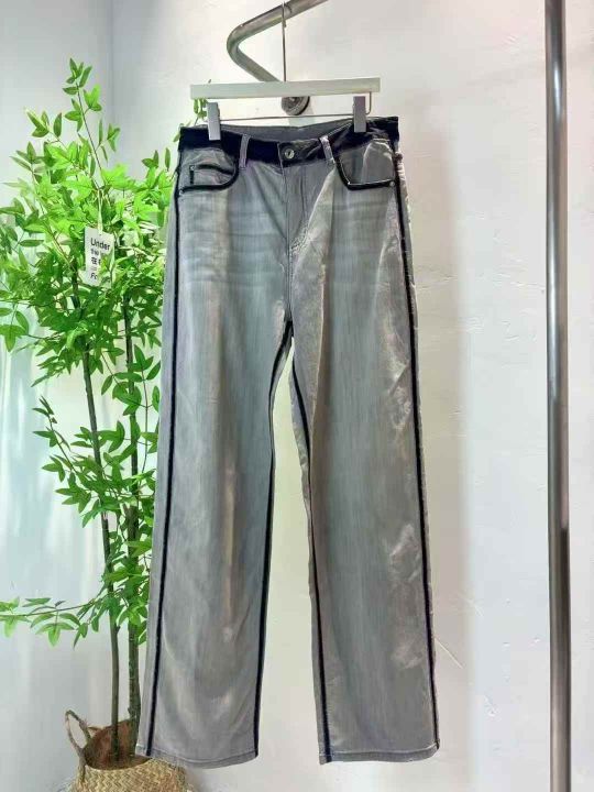 580件韩系松弛感复古做旧小辣妹高腰直筒烟灰色阔腿休闲牛仔裤,尺码2-5(S-XL) 含桑蚕丝质量好高弹力,YKK拉链,福利秒杀价12.8 不分货