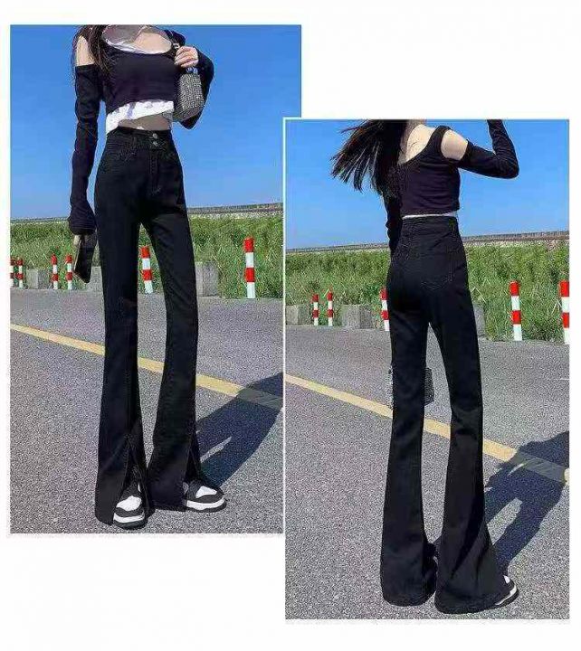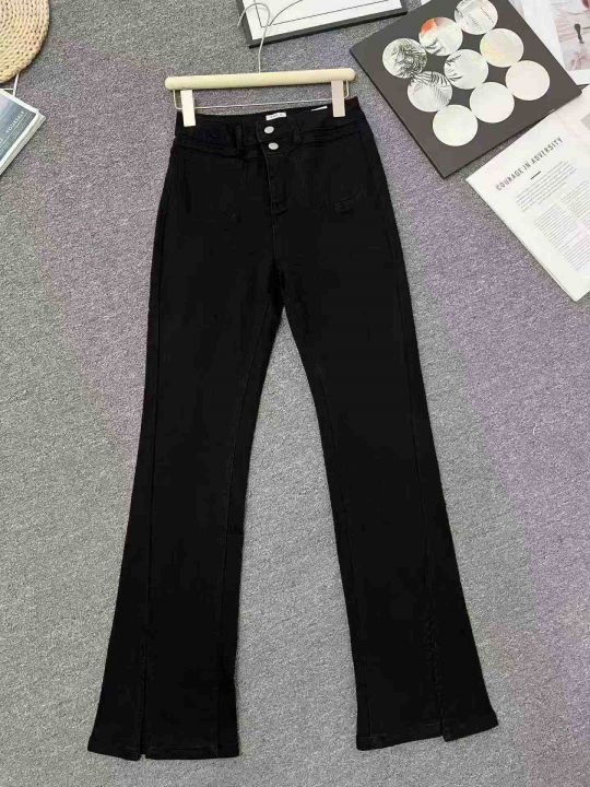 ☕️弹力烟灰色高腰微喇叭牛仔裤新款紧身毛边喇叭显瘦长裤91条全清11.8元,...