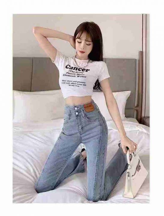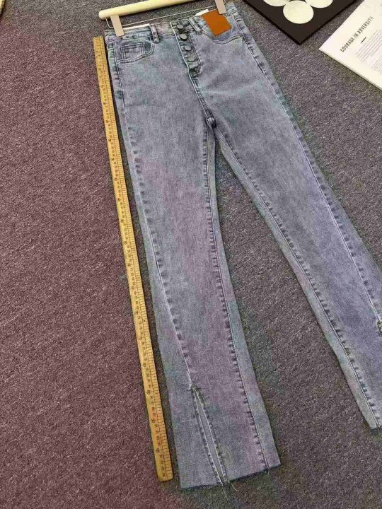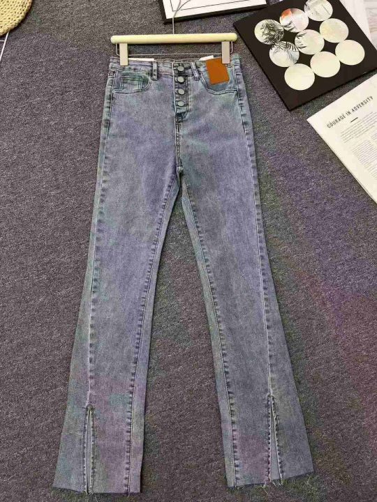 ☕️弹力烟灰色高腰微喇叭牛仔裤新款紧身毛边喇叭显瘦长裤91条全清11.8元,...