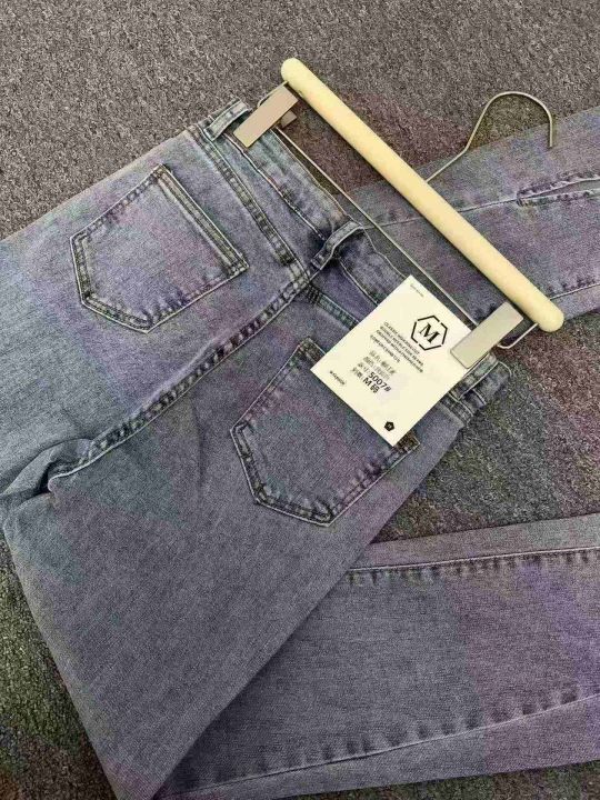 ☕️弹力牛仔裤女薄款破洞乞丐九分裤直筒裤高腰显瘦微喇裤24条全清9.8元,...