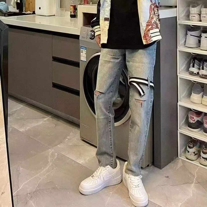 春季新款设计款洗水棉破洞南边牛仔裤,独立包装,码数...