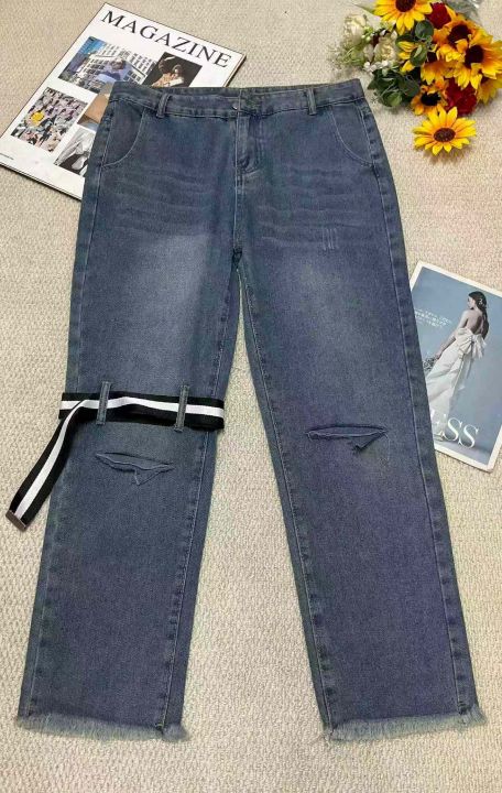 ☕️弹力牛仔裤女薄款破洞乞丐九分裤直筒裤高腰显瘦微喇裤24条全清9.8元,...