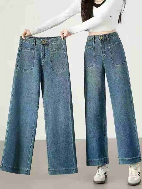☕️直筒牛仔裤女新款高腰宽松九分复古休闲窄版阔腿裤...