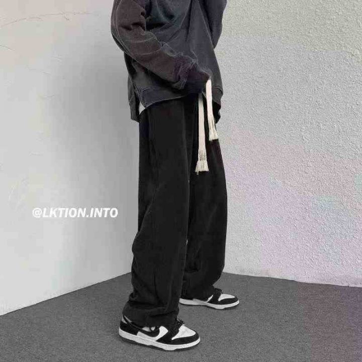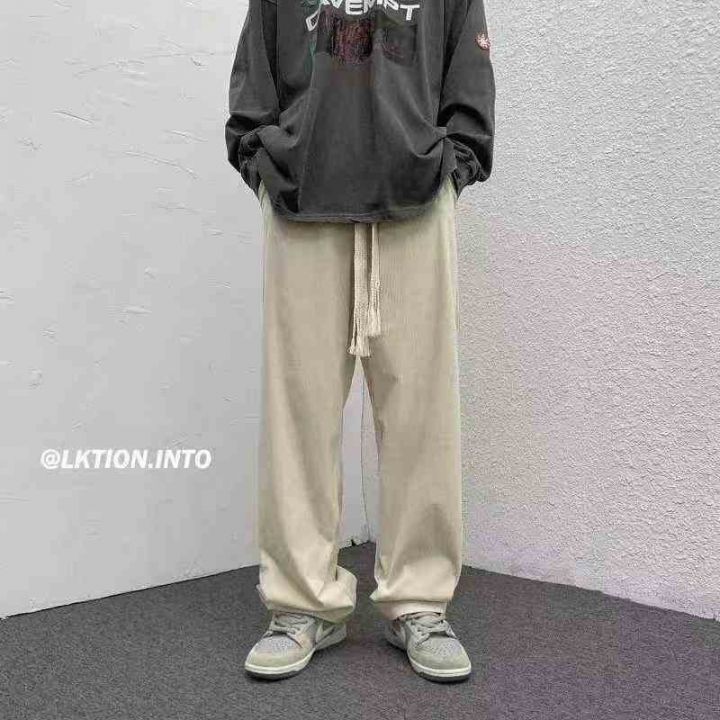 新款灯芯绒裤子男大抽绳ins潮宽松直筒休闲裤垂感阔腿...