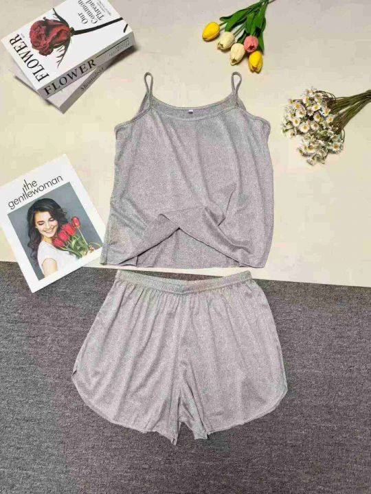 夏季性感吊带短裤女薄款睡衣两件套大码春秋家居服套装...