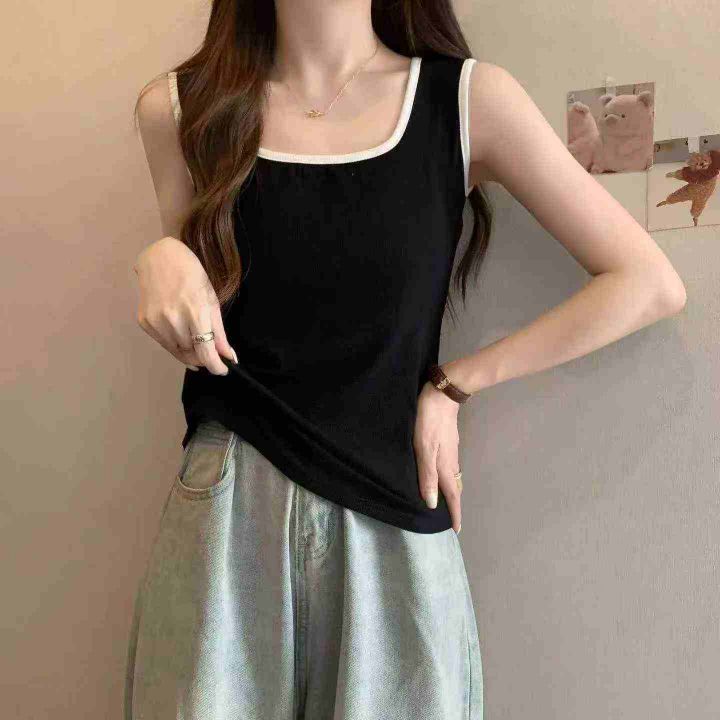 大码辣妹风无袖法式方领背心吊带小衫,整款两色,高弹...