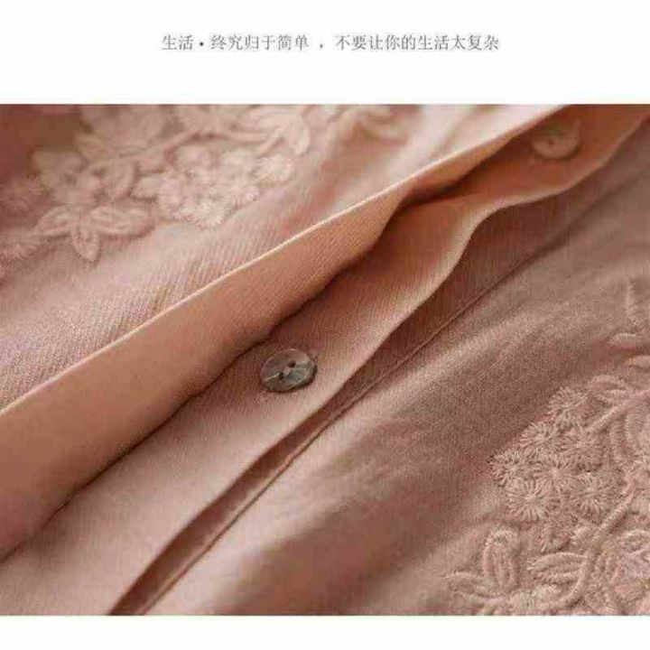 全清3.8,夏季新款五分袖刺绣棉麻衬衣女夏长款外搭圆...