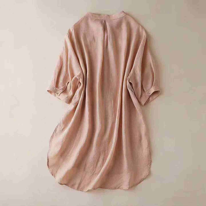 全清3.8,夏季新款五分袖刺绣棉麻衬衣女夏长款外搭圆...