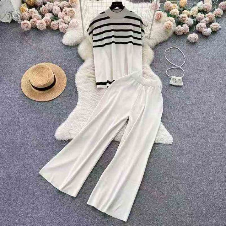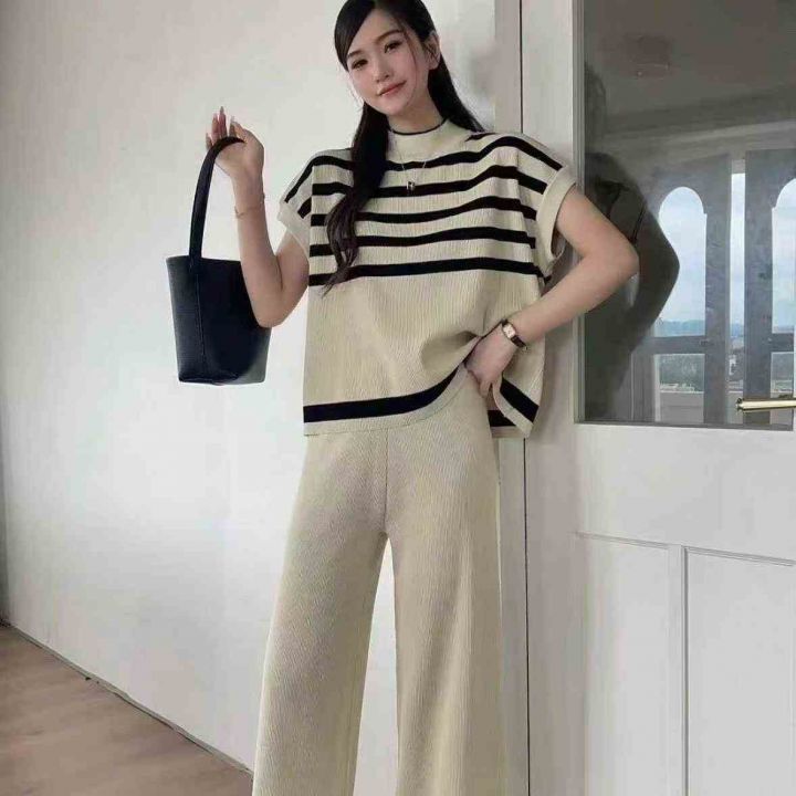 全清14.8分货+1,外贸简约高级感时髦小众条纹针织坎肩上衣+时尚修身阔腿裤女,数量20套,码数S-M,独立包装