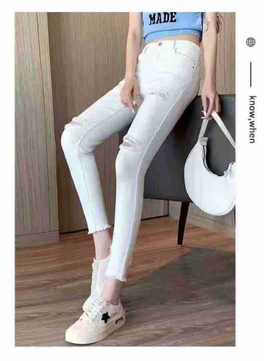 ☕️弹力牛仔破洞小脚裤女夏季薄款牛仔裤修身显瘦牛仔裤273条全清9.8元,码数25-30,正品独立包装[庆祝][庆祝][庆祝]