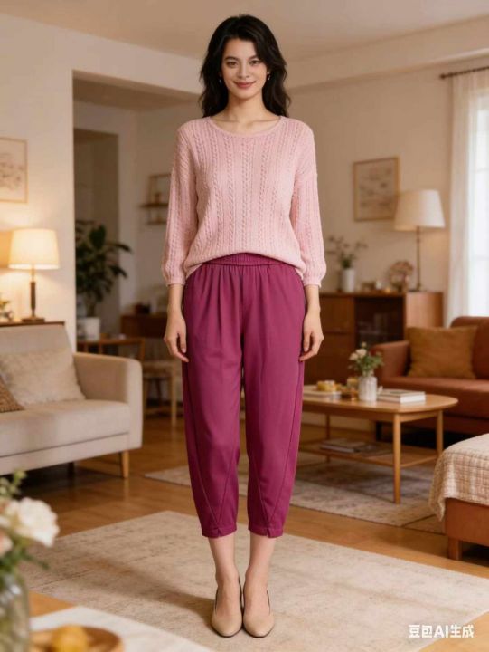 6.9元清品牌高档女裤系列~松紧腰宽松大码阔腿裤,腰头...