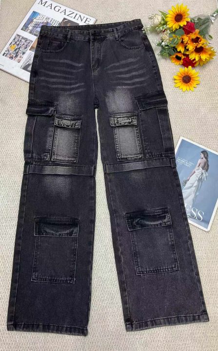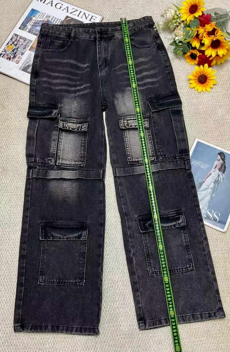 春季男士美式复古高街多口袋工装宽松直筒阔腿水洗牛仔裤,拆包装有吊牌,码数2XL--3XL码,100件左右,全清15.8元超低价秒杀!