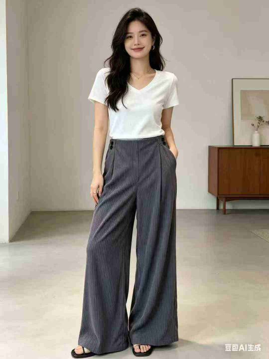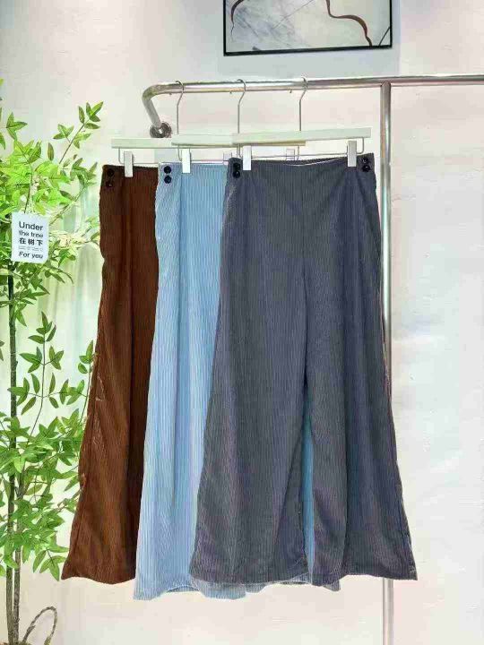 350条左右春季复古高腰坑条灯芯绒阔腿裤莫兰迪色系坑...