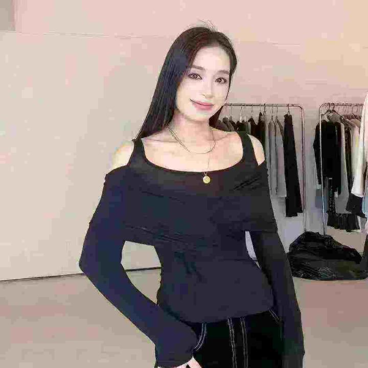 清仓4.9109件靓妹女装露肩设计感长袖上衣 图片款色,图三款多 面料有垂感...