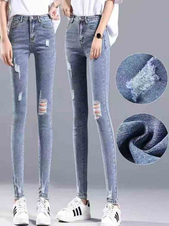 ☕️弹力破洞牛仔裤女新款高腰显瘦弹力紧身乞丐小脚铅笔裤716条全清9.8元,...