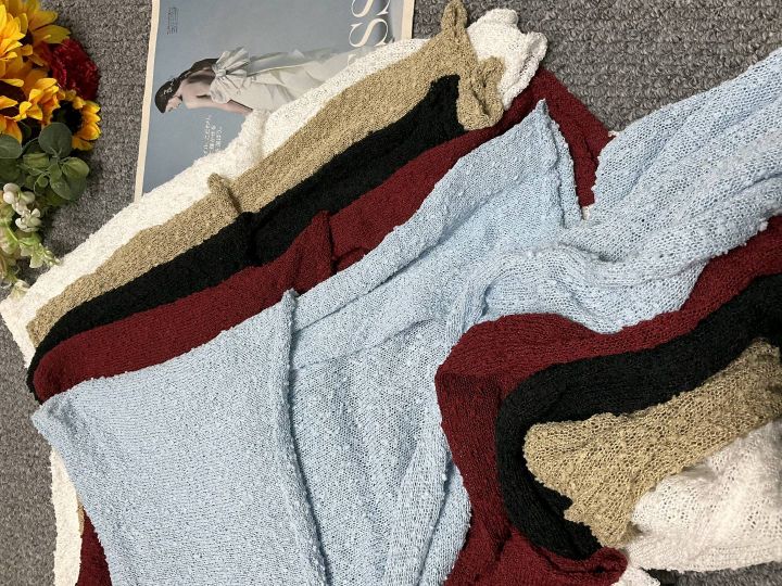 清仓4.9109件靓妹女装露肩设计感长袖上衣 图片款色,图三款多 面料有垂感...