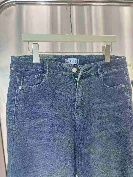 #Lady jeans wholesale弹力高腰微喇叭牛仔裤 修身款水洗棉长裤,数量1590条...