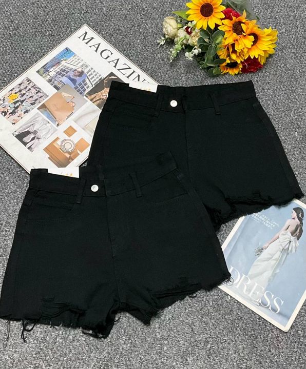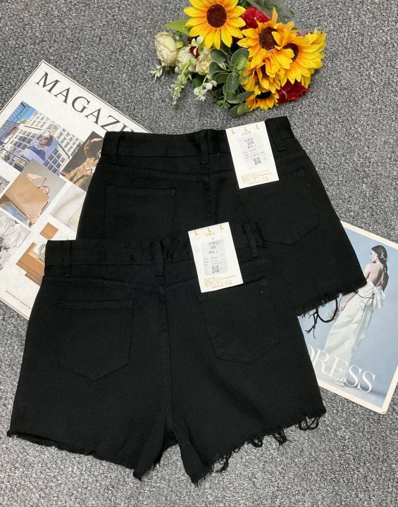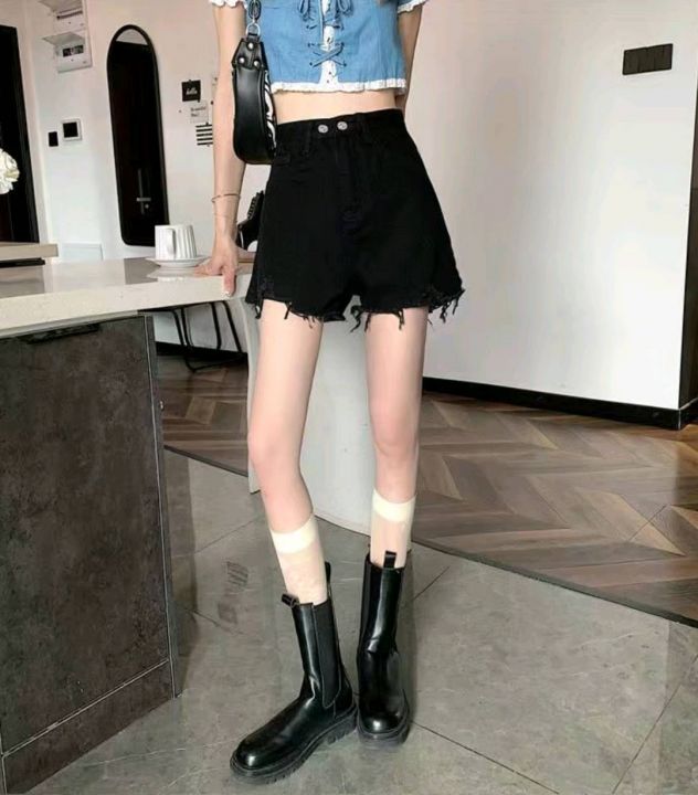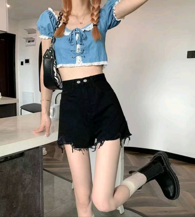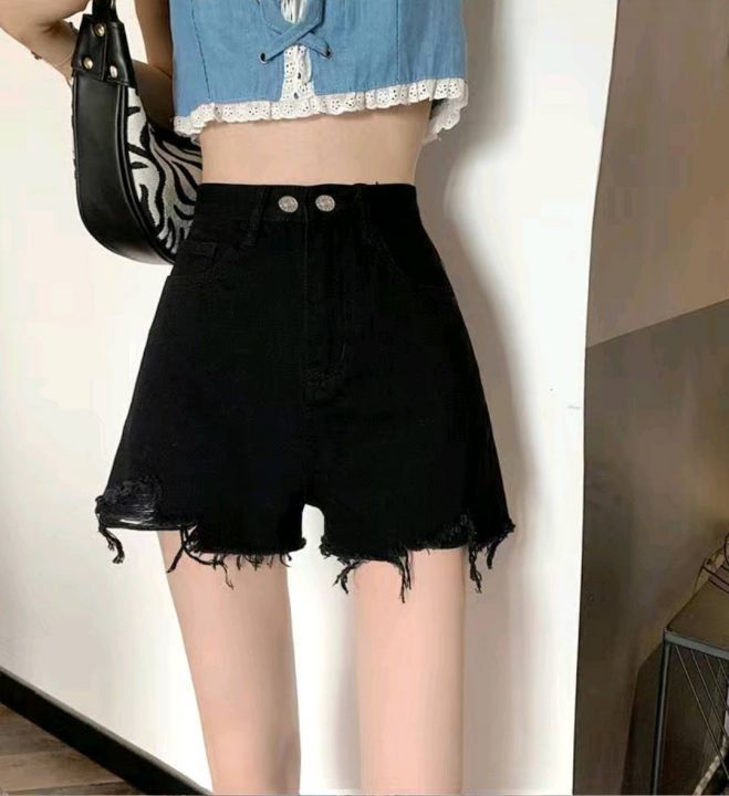 夏季新款高腰显瘦阔腿网红毛边洗水棉设计款牛仔短裤,...