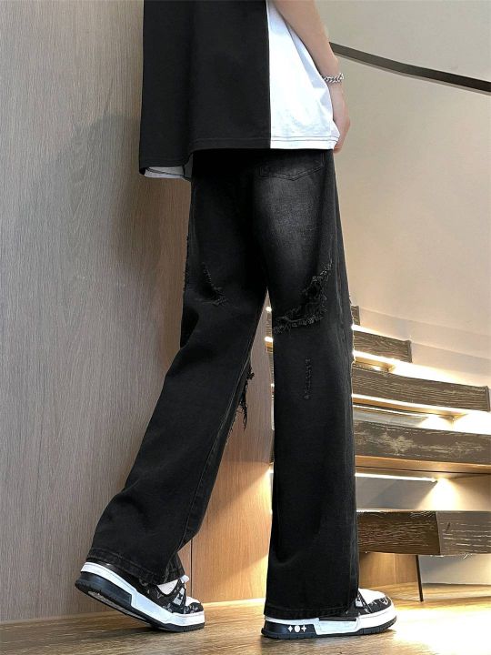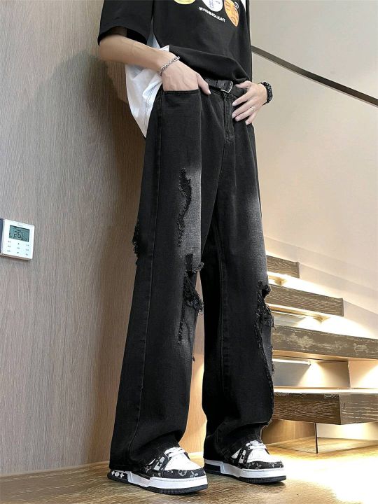 春夏季新款男美式vibe高街百搭黑色痞帅复古阔腿潮牌宽...