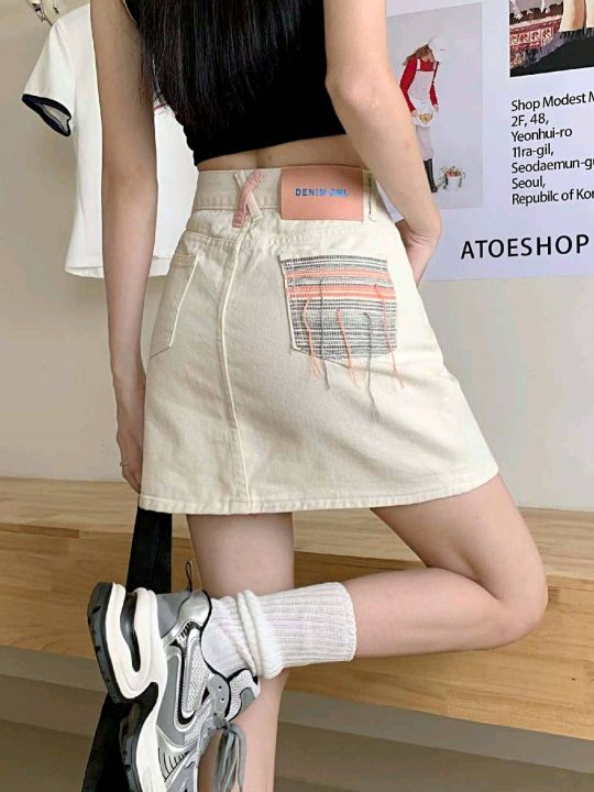 夏季新款复古刺绣撞色后袋设计款牛仔半身短裙,独立包...